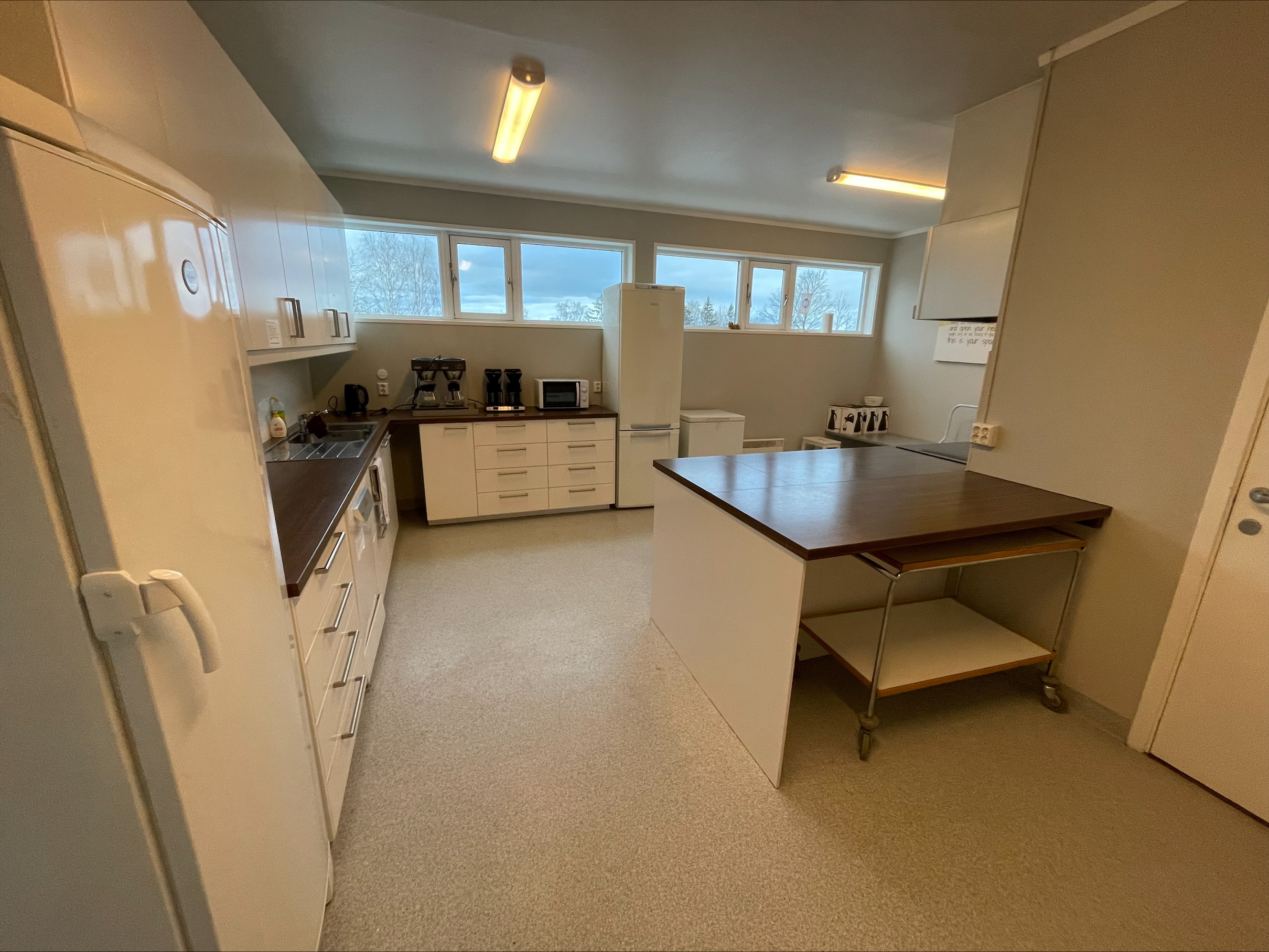Det er fullt utstyrt kjøkken ved siden av kirkestua og enkel ankomst med parkering rett ved siden av kirken.